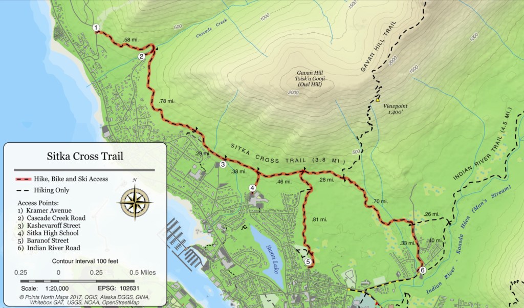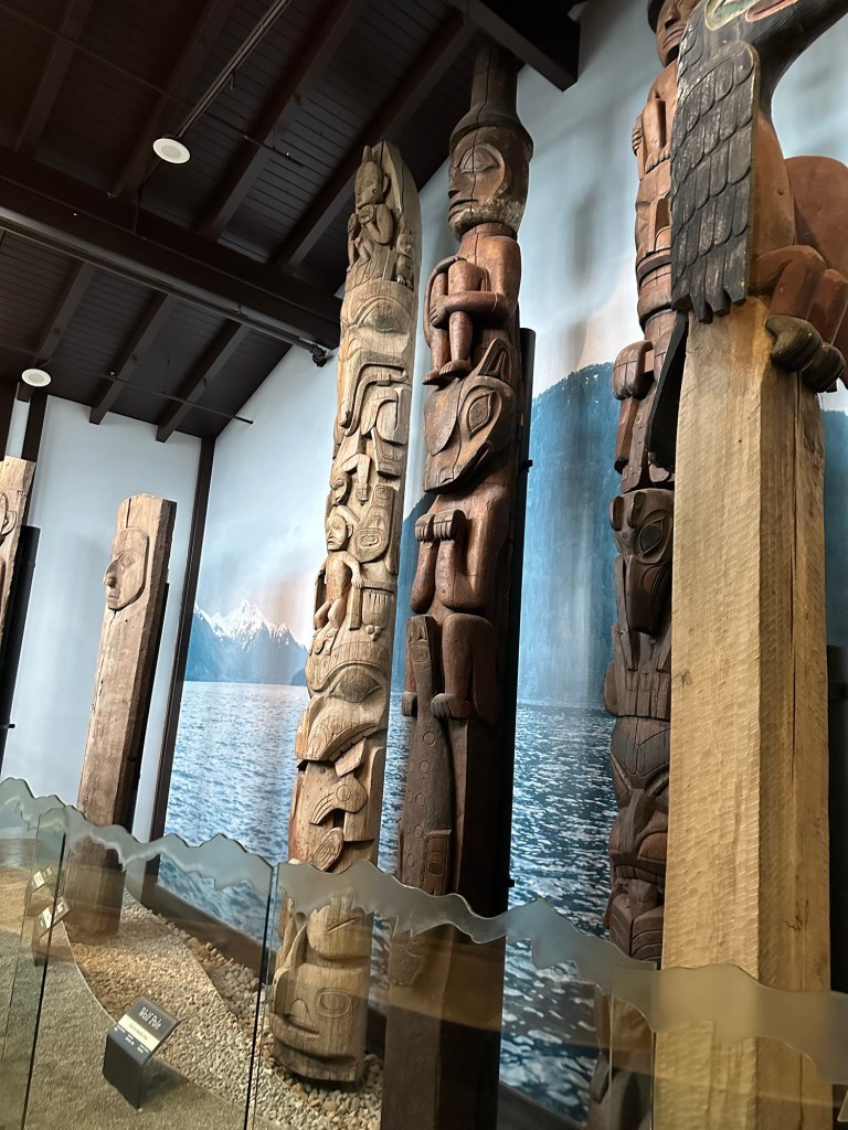 Sitka National Historic Park is located where Indian River flows into the bay. There are dozens of totem poles from around this area of Alaska that were collected over 100 years ago mostly by the first governor. This area is the native homeland of the Tlingit (pronounced ‘Clingit’) who have lived here for thousands of years.