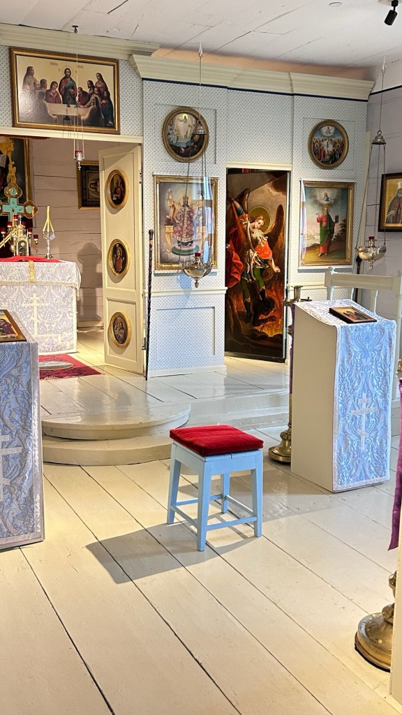 Onto the Russian Bishops House which is a Federal National Park which faces one of the four harbours this small town has. This museum has recently reopened after an extensive remodel and enhancement and the result is superb. There is a load of fascinating detail on the influence of the Russian Orthodox Church on the island once the Russians had solidified their presence in the area around 1799. The Church continued to have influence after Alaska was transferred to the USA in the 1870’s. Financial support continued all the way up until the 1917 Russian Revolution. Wikipedia entry is here.