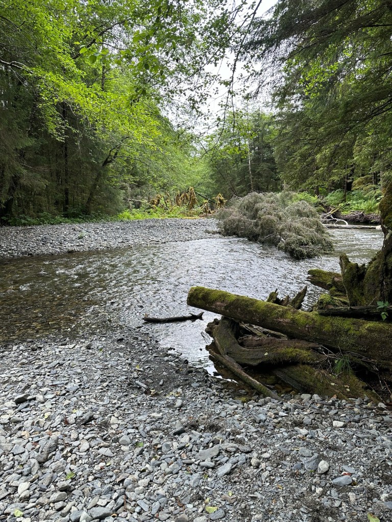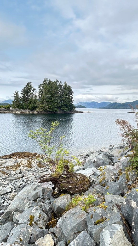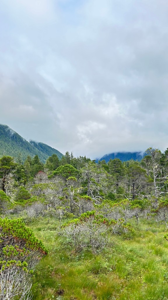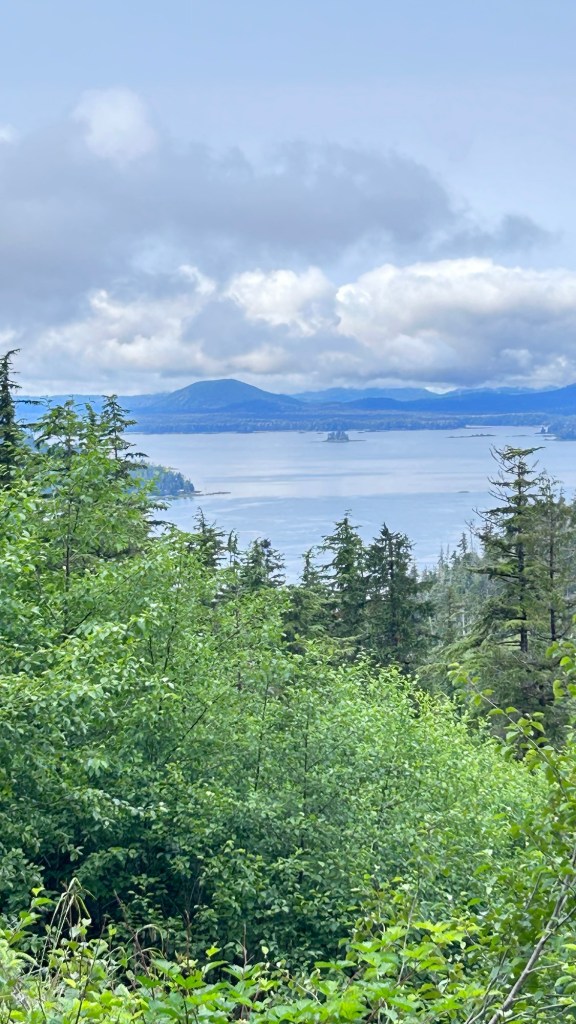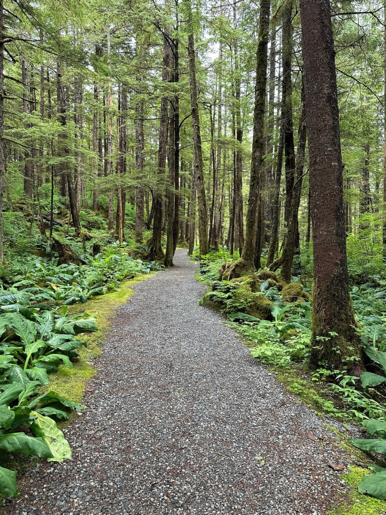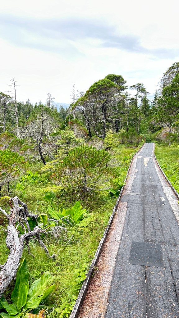 Secondly, the last two days have been spent simply enjoying the great outdoors. No new historical or cultural information to share today, sometimes it is time to just “be” and take in the beauty and peace of the landscape and environment. We hiked Old Sitka National Park, walked the boardwalks laid by the Forestry Service over the “muskeg” and watched for wildlife and birds. The magnitude of it all is quite breathtaking.