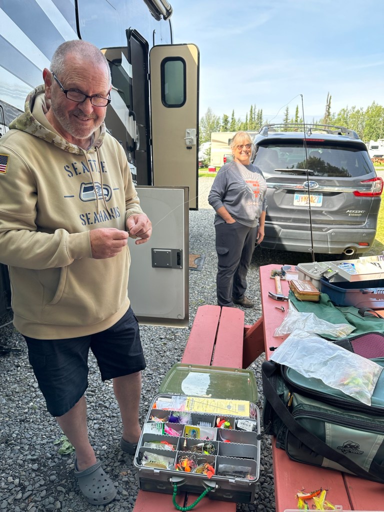 Of course Phil wanted a go…..so we stopped in Soldotna, where Rich and Laura from Washington State were staying. Rich is here fishing in Alaska for the whole month of August!! Yes apparently people can fish all day for a month.