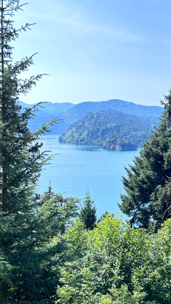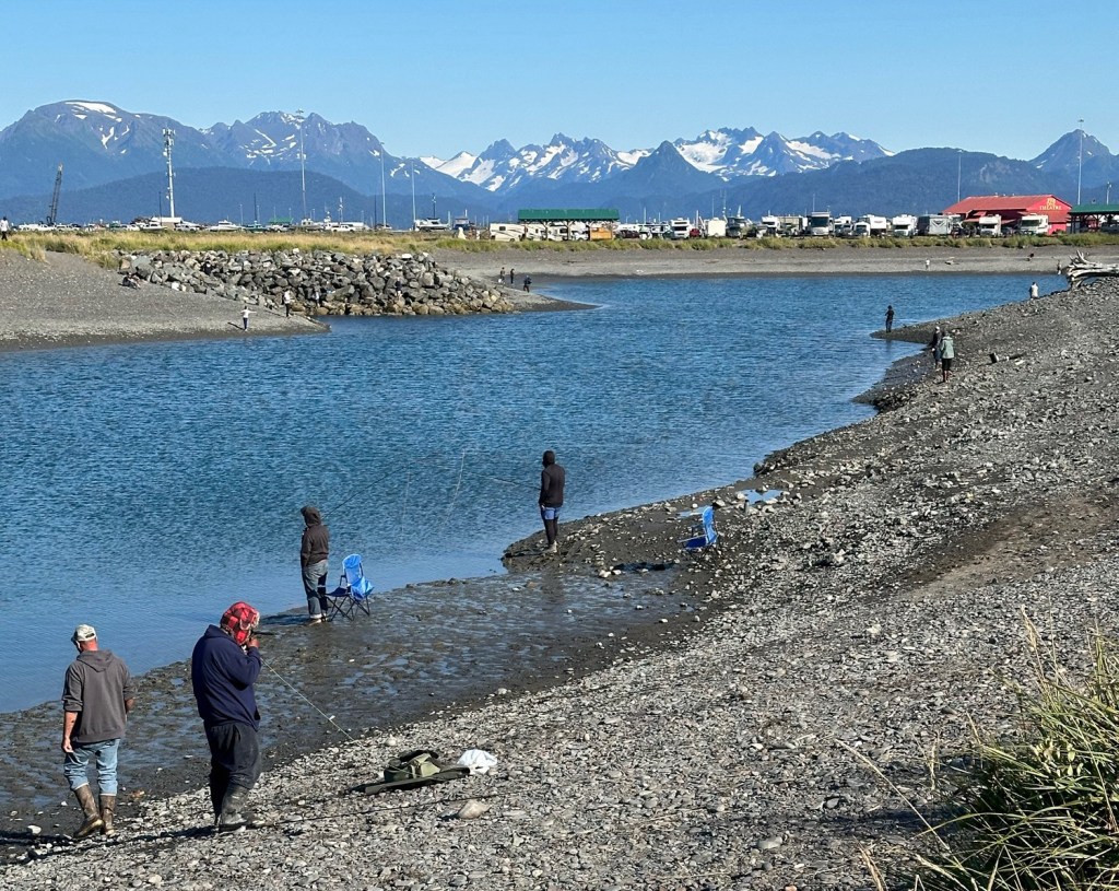 The idea of a man made “fishing hole” initially struck us as odd. This body of water which is probably ten acres in size is stocked with salmon fry directly from the hatchery. They go to sea and return two years later just like the ones in the rivers. We saw several youngsters fishing here.