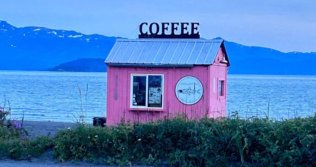 Alaska does a good trade in these cute, independent, small building coffee spots. All tend to have a drive through facility and all tend to open early to catch the morning trade. They are manned by only one or two people but they pop up any where and everywhere. Any unused hut, shed, garage forecourt building is a candidate for conversion. It is a great example of entrepneurial spirit. Sure Starbucks are about but in the big mall areas. These small shops are where they are convenient for customers, on the side of the road, in garage forecourts and next to workplaces.