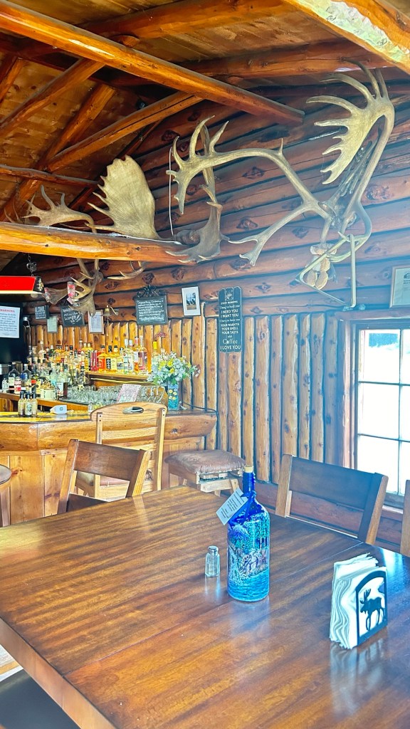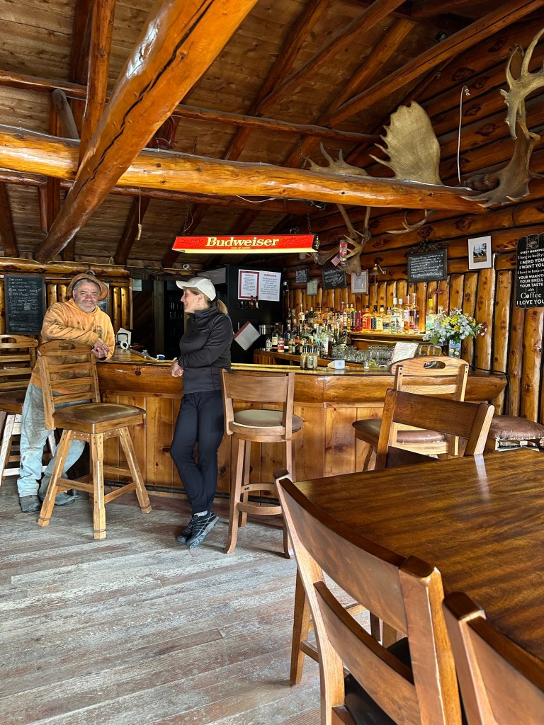 Ranch House Lodge Roadhouse on the Glenn Highway 12 miles west of Glenallen is an absolute gem. Karen and Andy bought the place 14 years ago when it was completely neglected and have put their hearts and souls into turning it into an exceptional RV park. Why do I say exceptional? Well they have a bar made out of a single tree that’s now 70 years old and they boast the best chilli in Tolsana! We can’t vouch for that, not having tried it…..The electrics,septic field, concrete plinths and picnic tables are all new and built by Andy.