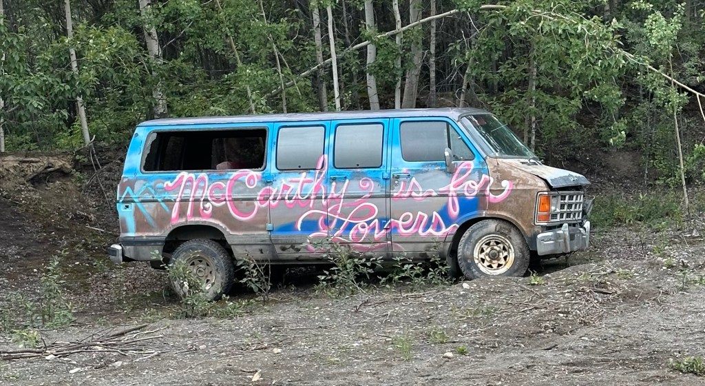 The day we drove out of Teklanika, we woke to a perfect morning with sunshine. Sods law as they say. With more rain forecasted, we pivoted from our original plan of driving the unpaved, but scenic Denali Highway, to undertaking a drive from Cantwell to Glenallen via the longer route of the Parks and Glenn Highways. The ultimate destination was McCarthy and the famous Kennicott mine. The distance is over 450 miles but here in Alaska people always talk about time to travel rather than distance. We expected this to be about a nine hour drive but of course it turned out to be longer than that.