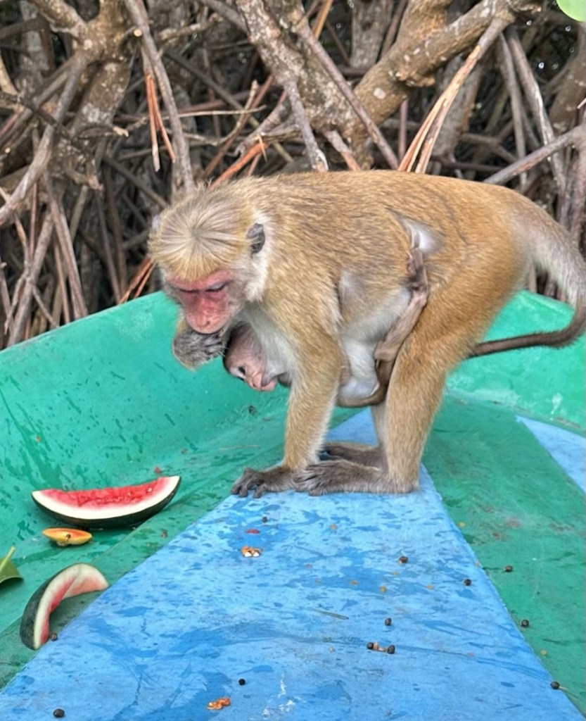 Monkey Island – a stop in the middle of Negombo Lagoon. We were welcomed with open arms by the local monkey population, babies as well. While you have to be careful and not try to treat them like pets they provide a range of fun and entertainment with their antics. Another “first” for us. Quite the encounter and experience.